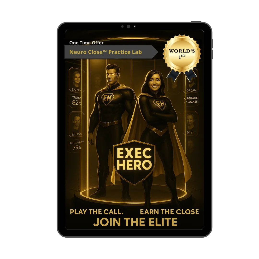 After checkout, we’ll email login credentials. Inside the ExecHero App, go to the Learn tab → Neuro Close™ Practice Lab. Your free month is already unlocked.