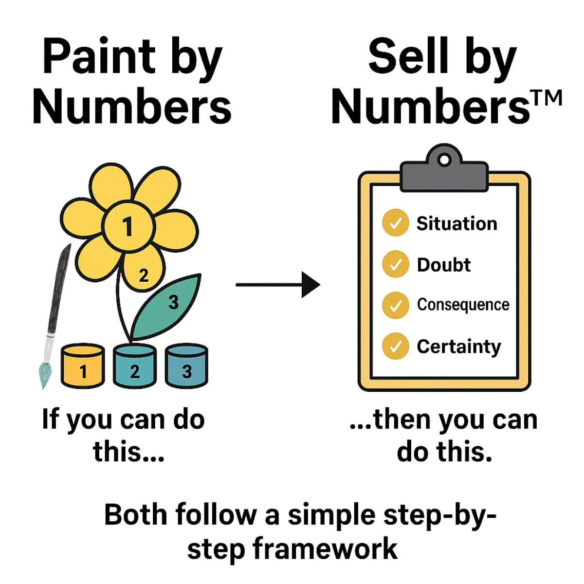 It gives you the Sell by Numbers™ flow—four simple phases (Situation → Doubt → Consequence → Certainty) with plug-and-play prompts.