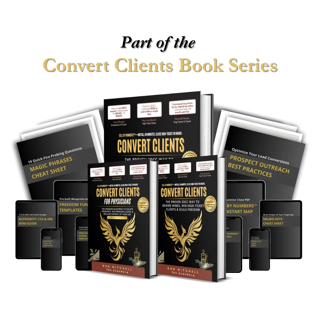 Convert Clients and all books contained within the series, reveals the SDCC Way™(Subconscious-Driven, Conscious Closing): the mind-first system that closes high-ticket by selling to the subconscious.